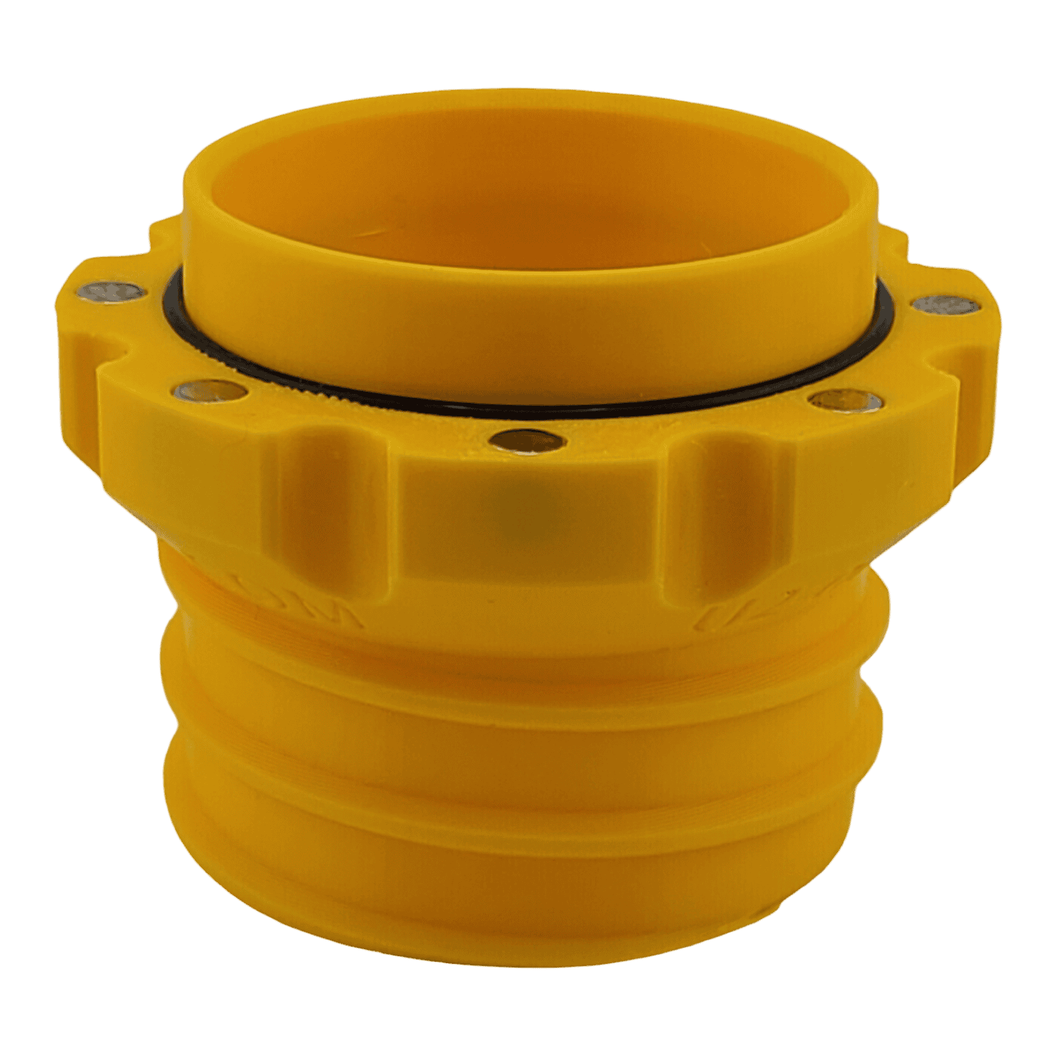 This 2.5″ flex hose adapter will allow you to connect your hose to another hose or your dust extractor quickly and easily without fiddling with hard-to-press buttons, tabs, or clamps. This is the MALE end — in our system, the male end points toward the vacuum source, and the female end points toward the tool. *Note that these adapters are designed to work with our tool adapters, vacuum port adapters, and blast gates, sold separately.*