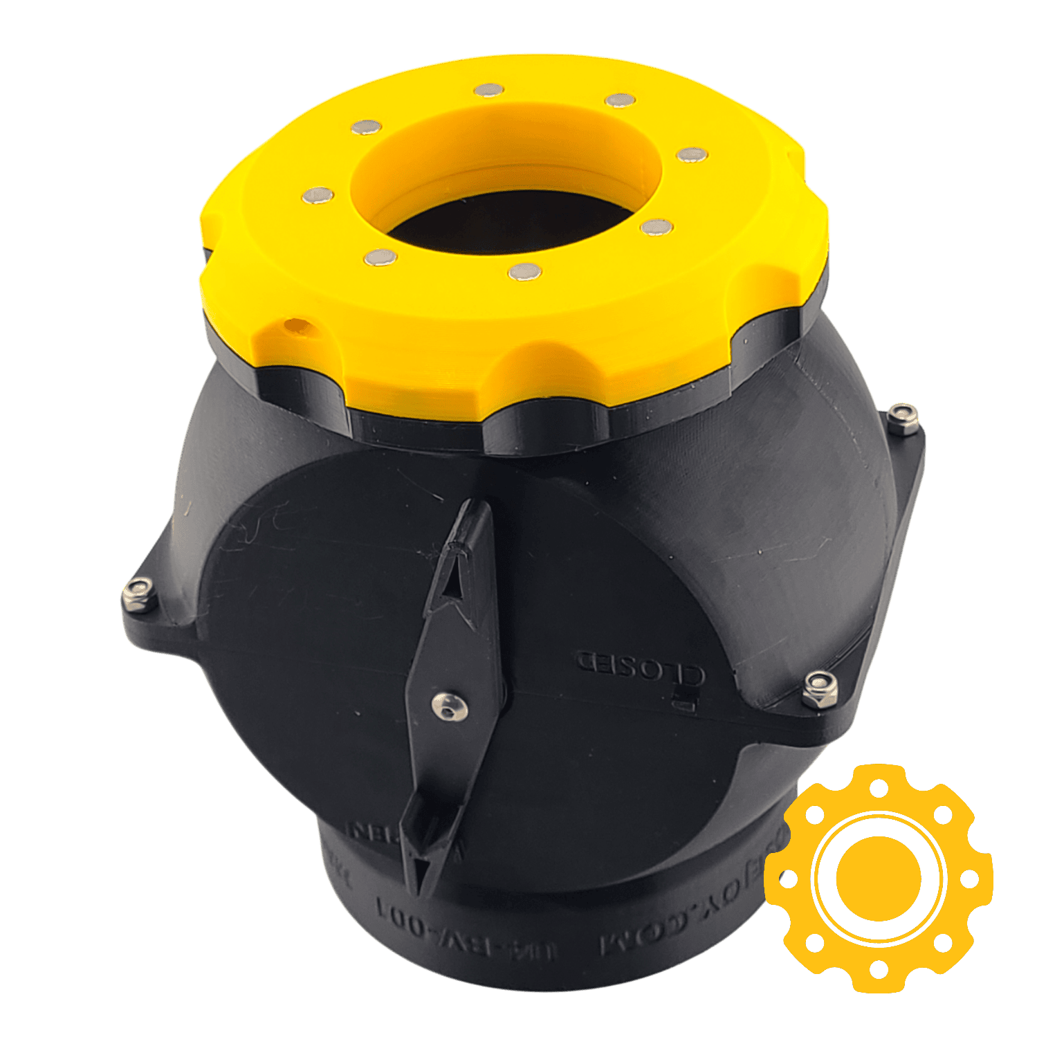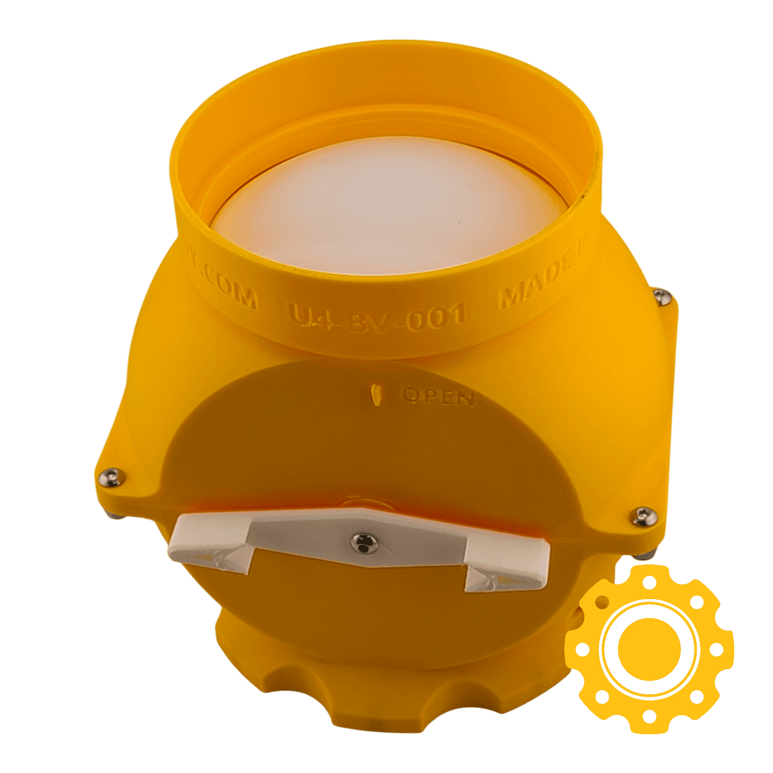 This ball valve blast gate doesn’t restrict air at all, never clogs, and shuts airtight. One end is designed to fit over standard 4″ PVC pipe, and the other end has a female magnetic connector that accepts our U4 series magnetic hose connectors and size-down adapters. *Note that these ball valves are designed to work with our flex hose adapters, sold separately. If you would like one that connects to PVC pipe on both ends, just message us! We also offer these in the U2 size that will connect to 2″ and 2.5″ PVC and our 2.5″ magnetic hose adapters.*