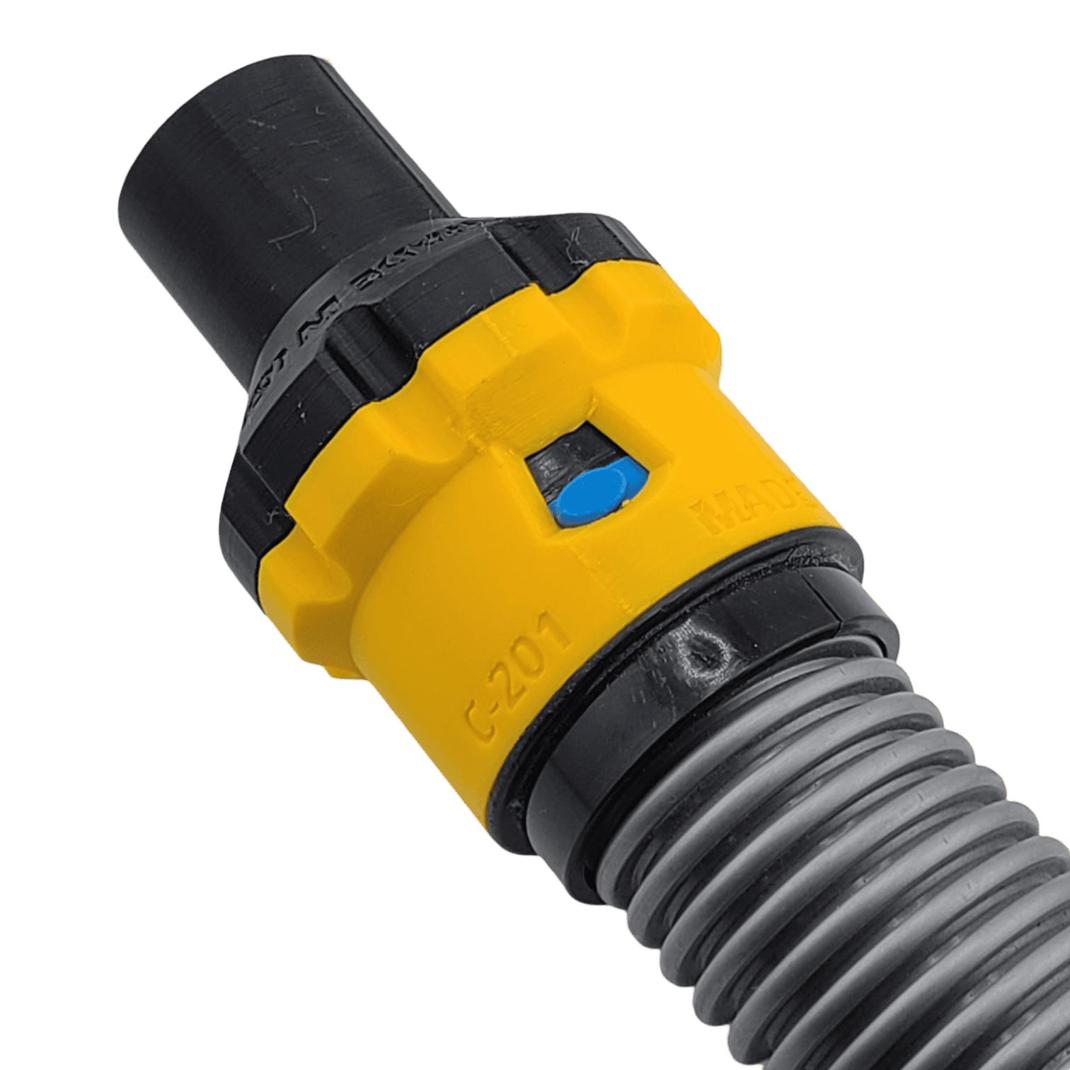 This magnetic adapter for Cen-Tec Quick Click and Fein dust extractor hoses is the quickest way to make those hoses compatible with the HoseJoy system. The Quick Click system is one of the best legacy solutions out there (that’s why Fein also uses it), but if you have it, you know that it can be a struggle to depress both of the little buttons in order to release the tool connectors. This piece is the quickest way to convert to our superior magnetic connector system, and it requires no modification of your existing Fein / Cen-Tec hose — just click it on and you’re ready to connect to any of our dozens of magnetic tool connectors.