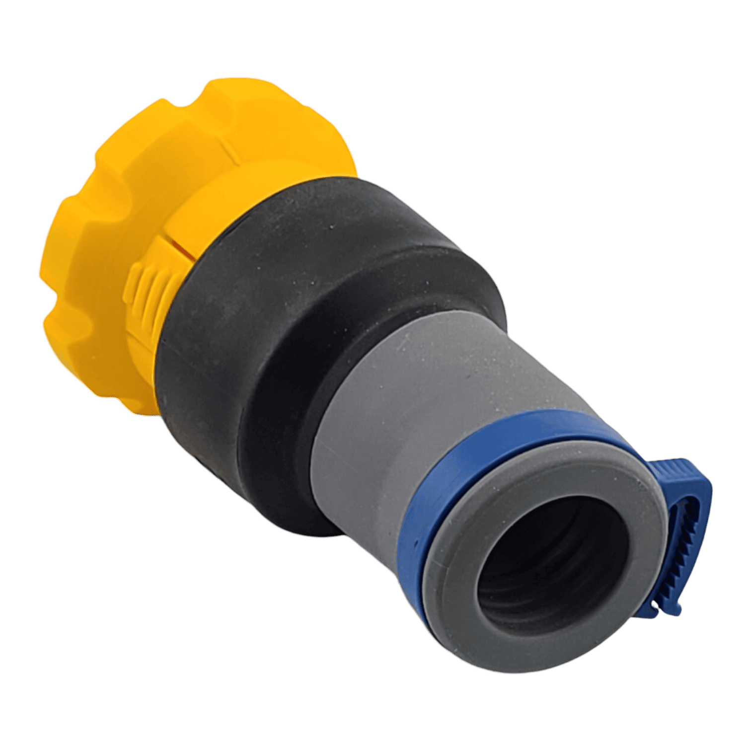 This magnetic adapter for FlexiPort tool connectors is the quickest way to make those connectors compatible with the HoseJoy system. The Rockler Click-Connect system is one of the best legacy solutions out there, but if you have it, you know that it can be a struggle to depress both of the little tabs in order to release the tool connectors, especially if you have weak or arthritic hands (despite the marketing, there’s really nothing quick or easy about the Rockler Click-Connect detachment method). This piece is the quickest way to convert to our superior magnetic connector system, and it requires no modification of your existing FlexiPort tool connectors — just click it in and you’re ready to connect to any of our magnetic hose connectors.