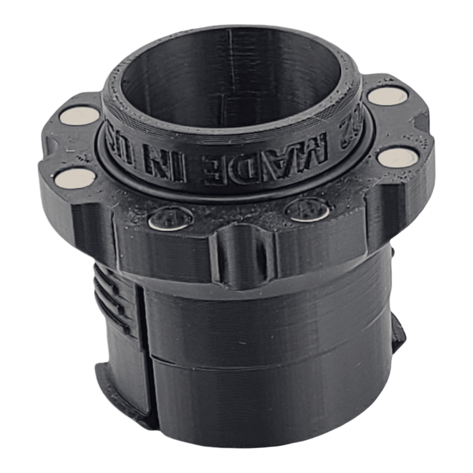 This magnetic adapter for FlexiPort tool connectors is the quickest way to make those connectors compatible with the HoseJoy system. The Rockler Click-Connect system is one of the best legacy solutions out there, but if you have it, you know that it can be a struggle to depress both of the little tabs in order to release the tool connectors, especially if you have weak or arthritic hands (despite the marketing, there’s really nothing quick or easy about the Rockler Click-Connect detachment method). This piece is the quickest way to convert to our superior magnetic connector system, and it requires no modification of your existing FlexiPort tool connectors — just click it in and you’re ready to connect to any of our magnetic hose connectors. *Note that these adapters are designed to work with our hose adapters, vacuum port adapters, and blast gates, sold separately.*