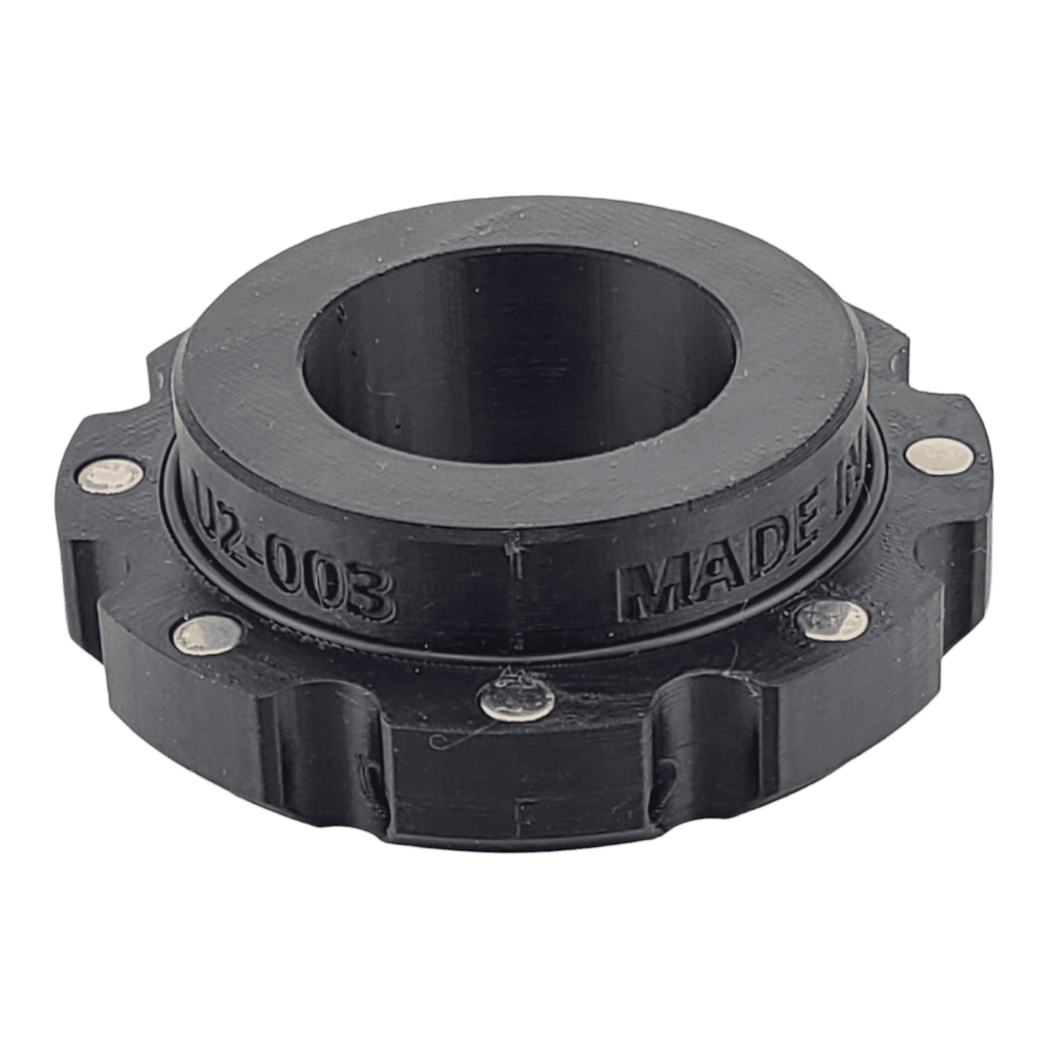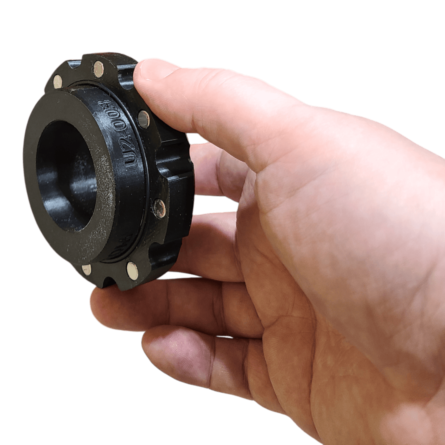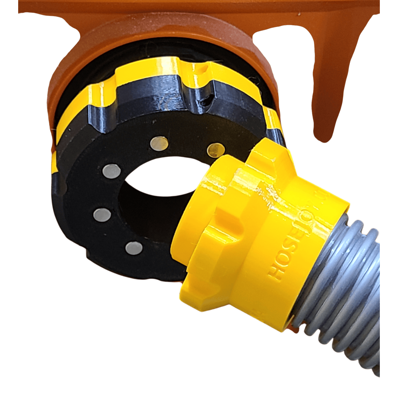 This “size down” hose adapter will allow you to connect two different sized hoses quickly and easily without fiddling with hard-to-press buttons, tabs, or clamps. It has magnets on both sides, and includes a lanyard hole if you’d like to attach it to your dust extractor with paracord or elastic. This one is a bit more expensive to produce because it has twice as many magnets. At around a dollar a piece, these *real* N52 magnets aren’t cheap, and this part has sixteen of them. *Note that these adapters are designed to work with our flex hose adapters, sold separately.*