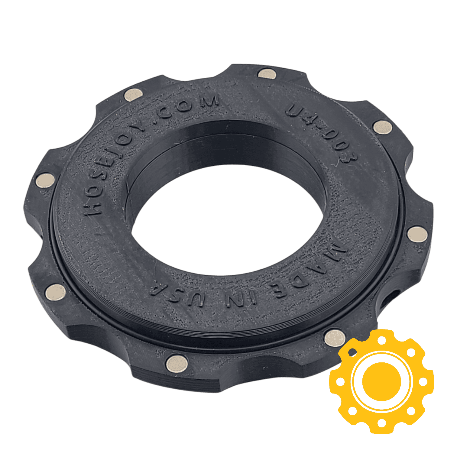 This magnetic size down hose adapter is part of the HoseJoy magnetic hose connector system, providing a fast, clamp-free way to connect 4″ hoses to smaller tools.